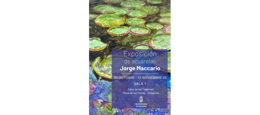 El Ayuntamiento de Estepona informa que la Sala 1 de la Casa de Las Tejerinas, sita en la Plaza de las Flores, acogerá del 30 de octubre al 12 de noviembre, una exposición de acuarelas del arquitecto y acuarelista Jorge Maccario.