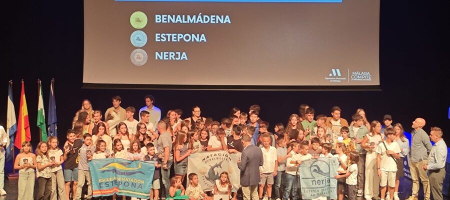 El Ayuntamiento de Estepona informa que la Escuela Deportiva Municipal de Natación de Estepona ha sido reconocida en la Gala de Clausura de los Circuitos Provinciales de Natación, celebrada en el Auditorio Edgar Neville de la Diputación de Málaga, donde se premiaron los mejores resultados de las competiciones de invierno y verano 2025, que han reunido a cerca de 700 nadadores de 14 municipios. Una cita para reconocer el esfuerzo, la convivencia y los valores del deporte base en toda la provincia.